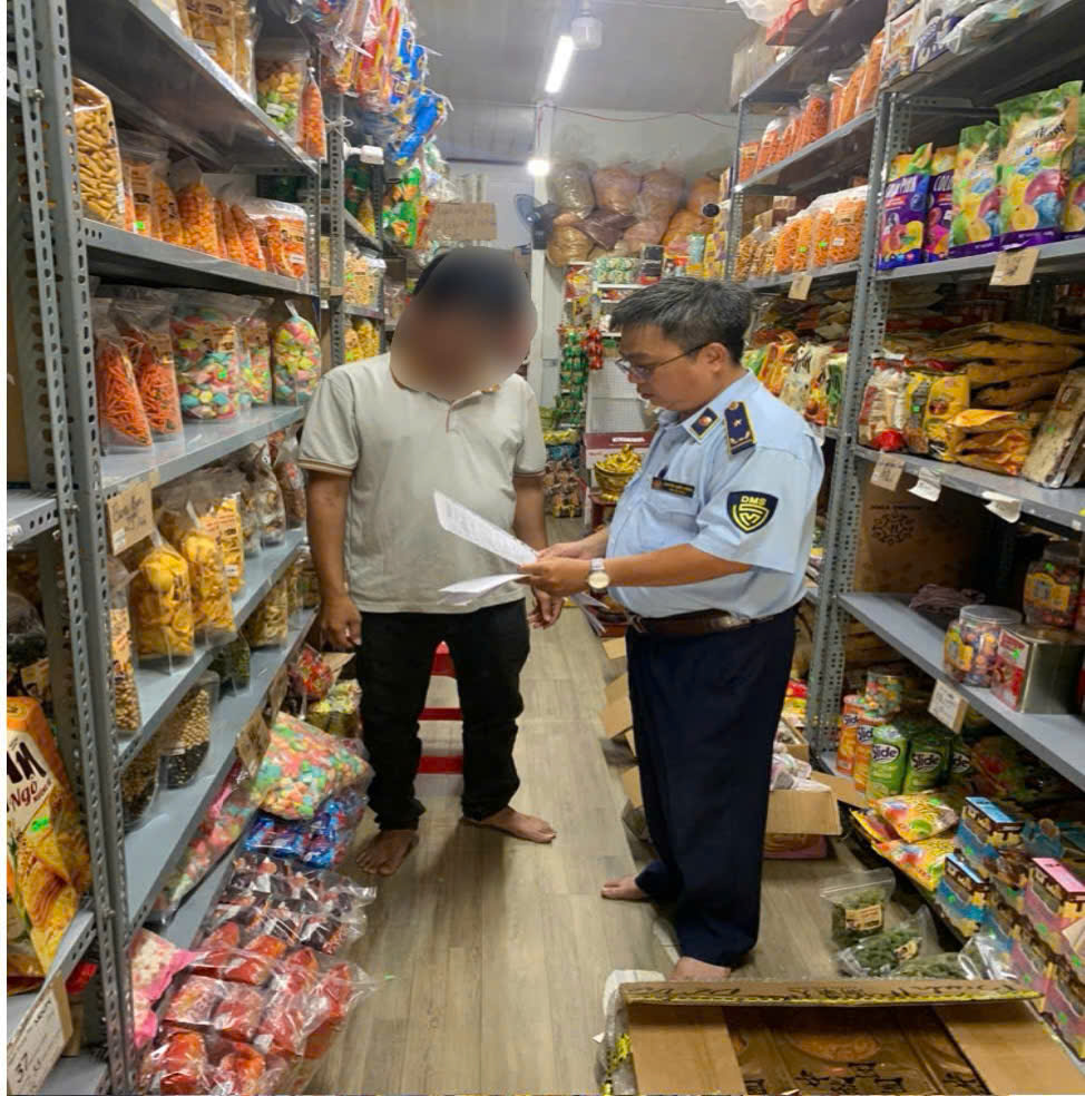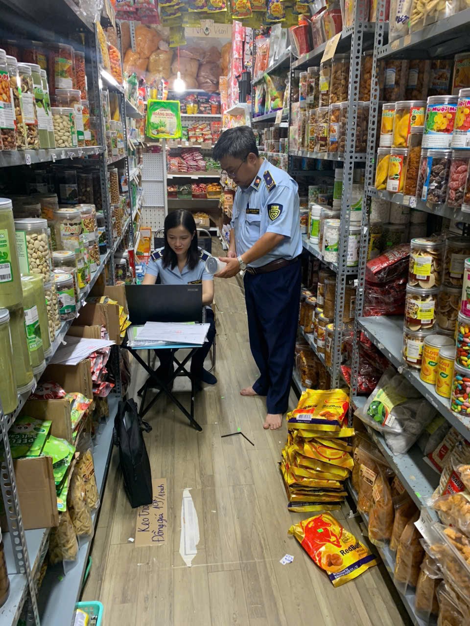 Tại hộ kinh doanh Sachi Shop do ông Q.H.Đ làm đại diện (khu dân cư An Khánh, phường Tân An), đoàn kiểm tra ghi nhận 27 hũ thạch dừa, 20 túi kẹo dâu phủ sôcôla, 10 hũ tắc ngâm đường, 9 hộp mứt nho và 76 túi mứt xí muội không có hóa đơn, chứng từ hợp pháp. Các sản phẩm cũng không thể hiện thông tin nơi sản xuất hoặc xuất xứ. Tổng giá trị lô hàng vi phạm là 5,32 triệu đồng.