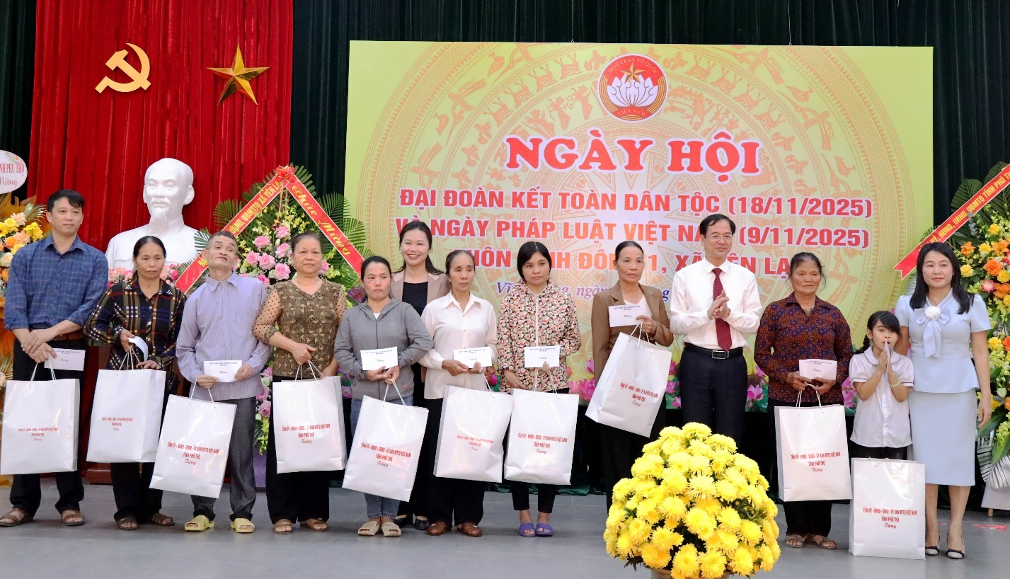 Đại diện lãnh đạo Sở Tư pháp tặng quà chúc mừng Nhân dân khu 11