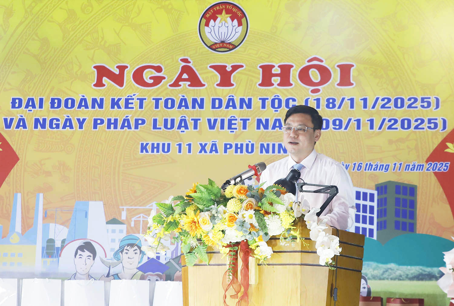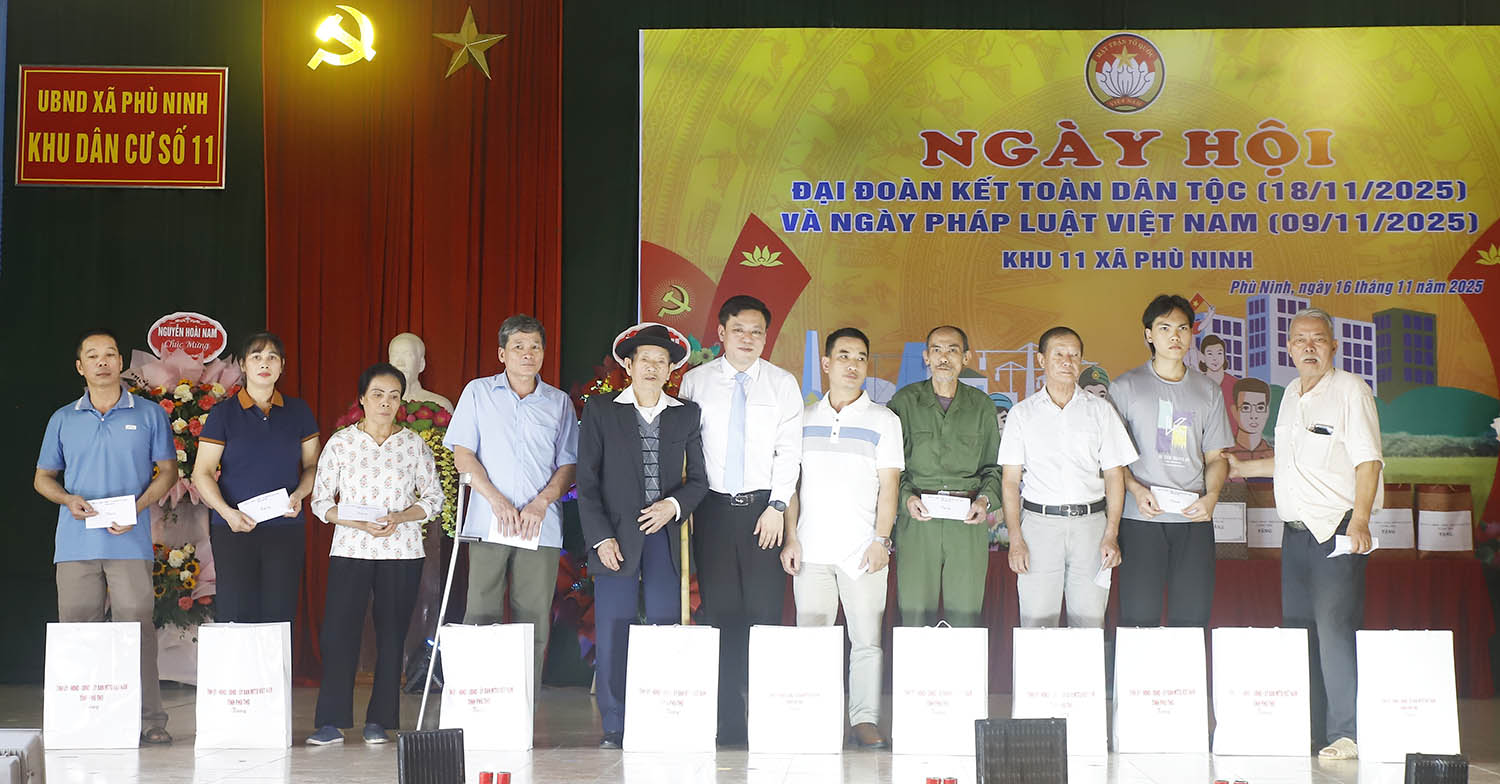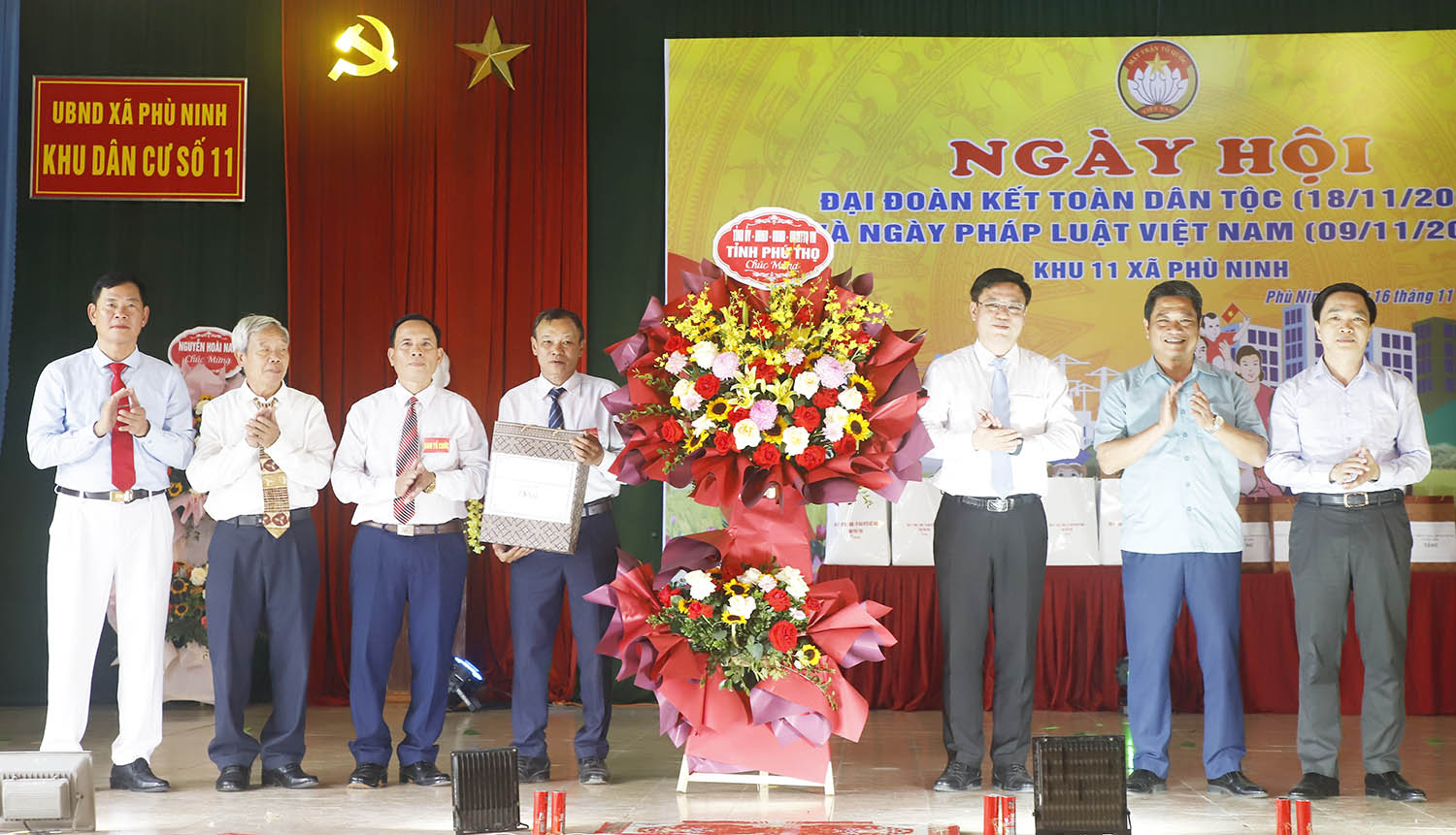 Đồng chí Hoàng Xuân Giao - Tỉnh ủy viên, Phó Chủ tịch Ủy ban MTTQ tỉnh, Chủ tịch Hội Nông dân tỉnh tới dự và chung vui Ngày hội với Nhân dân khu 11, xã Phù Ninh. Cùng dự có đại diện lãnh đạo Sở Dân tộc và Tôn giáo, Sở Tư pháp; Đảng ủy, UBND xã Phù Ninh.