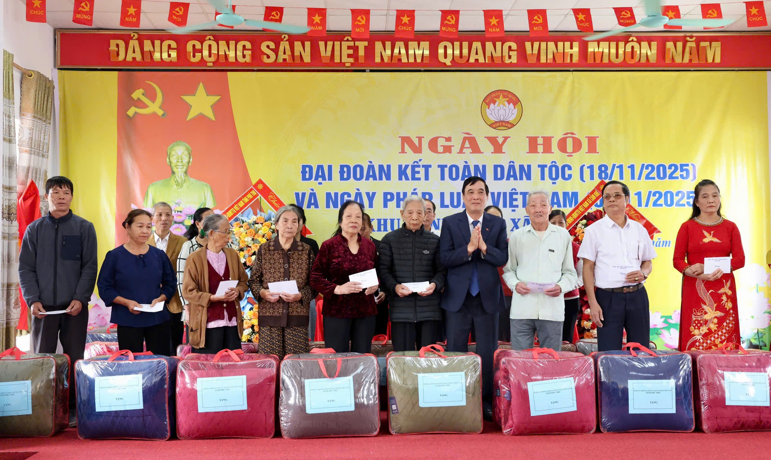 Phó Chủ tịch UBND tỉnh Nguyễn Huy Ngọc trao quà của Tỉnh ủy, HĐND, UBND, Ủy ban MTTQ tỉnh cho các hộ có hoàn cảnh khó khăn trên địa bàn thôn