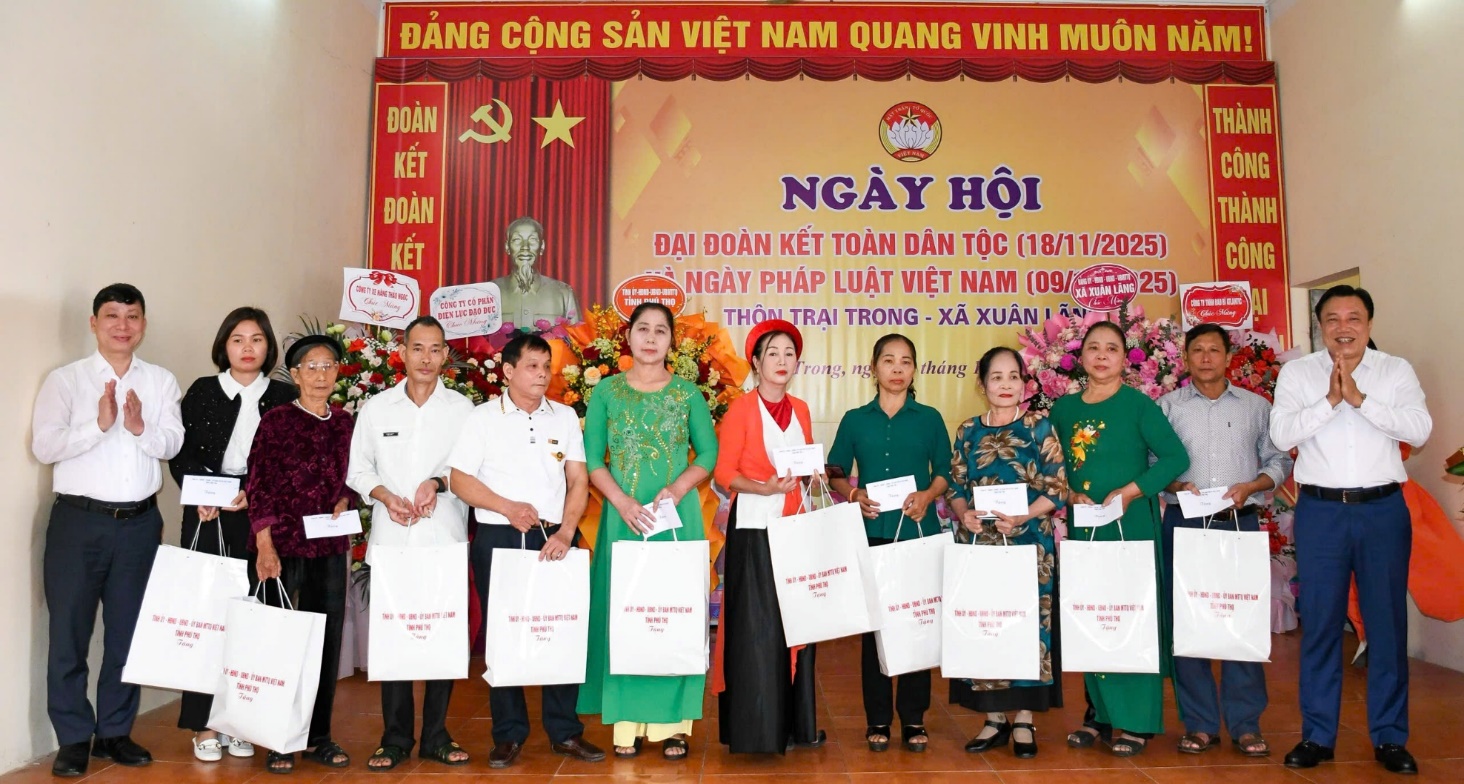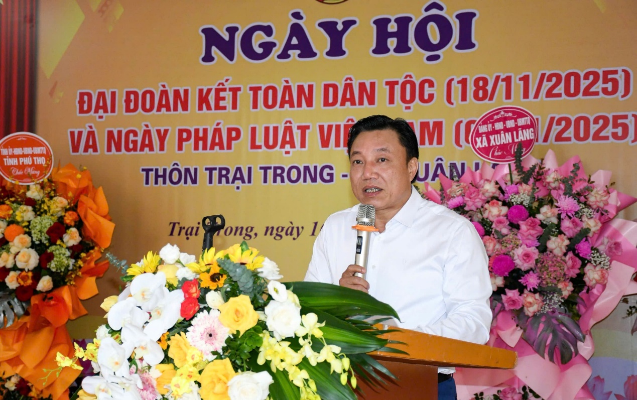 Đồng chí Nguyễn Huy Ngọc - Tỉnh ủy viên, Phó Chủ tịch UBND tỉnh tới dự và chúc mừng Ngày hội Đại đoàn kết toàn dân tộc và Ngày Pháp luật Việt Nam tại thôn Trại Trong, xã Xuân Lãng. Cùng dự có đại diện lãnh đạo một số sở, ngành của tỉnh và xã Xuân Lãng.