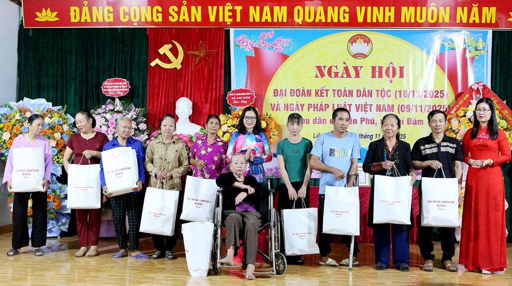 Nhân dịp này, Phó Chủ tịch Hội Liên hiệp Phụ nữ tỉnh Nguyễn Thị Tình đã tặng hoa chúc mừng Nhân dân Khu dân cư Liên Phú, xã Chí Đám và trao tặng 10 suất quà của Tỉnh ủy - HĐND - UBND - Ủy ban MTTQ tỉnh cho các hộ gia đình có hoàn cảnh khó khăn trên địa bàn. Nhiều tập thể, cá nhân tiêu biểu trong khu dân cư được biểu dương, khen thưởng.