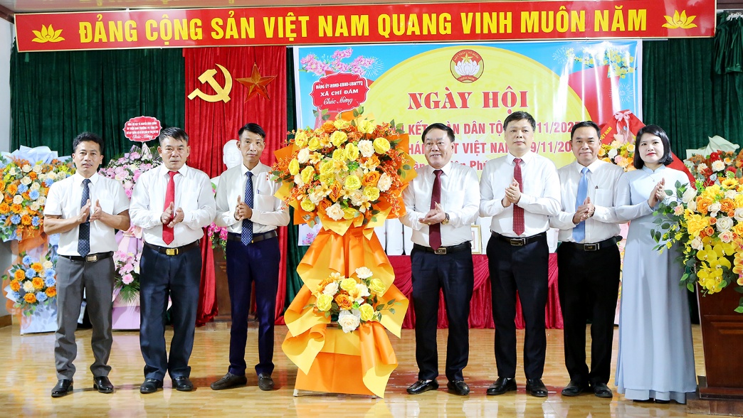 Lãnh đạo Đảng ủy xã Chí Đám tặng hoa chúc mừng Nhân dân Khu dân cư Liên Phú